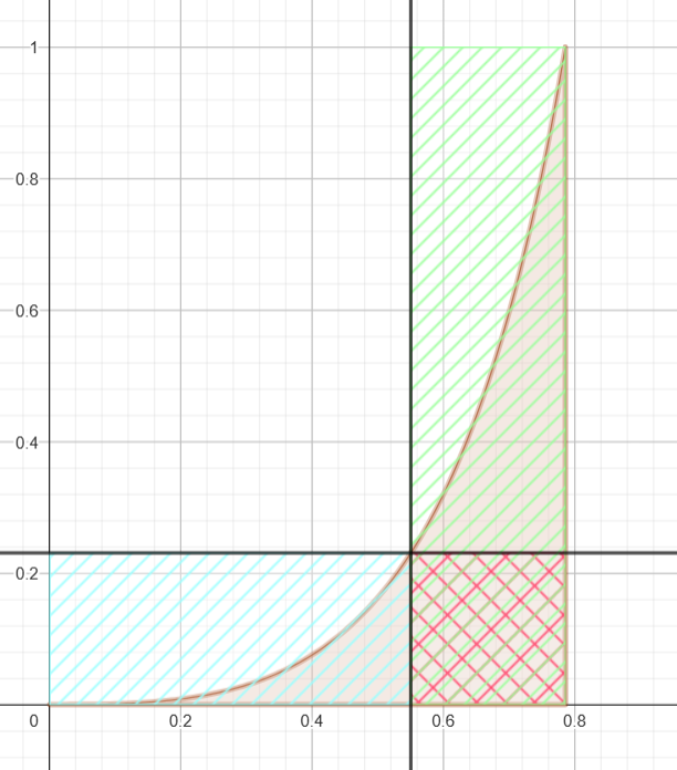 \( \begin{align*} \overbrace{\int_0^{a} tan^nt.dt}^{>0}+ \int_a^{\pi/4} tan^nt.dt = & J_n = \underbrace{\overbrace{\int_0^{a} tan^nt.dt}^{\leq (a-0)tan^na}}_{\text{carré bleu}} +\underbrace{\overbrace{\int_a^{\pi/4} tan^nt.dt}^{(\pi/4-a)tan^n1}}_{\text{carré vert}} \\ Il vient : \[ \boxed { \begin{align*}\forall a \in ]0;\pi/4[, (\pi/4-a)tan^na \leq & J_n \leq a tan^n a +(\pi/4-a) \end{align*}}\] \(J_n\) prendra sa valeur si \( a \to \pi/4\) sans atteindre \(\pi/4\), et alors, Il résulte que :\(\lim (\pi/4-a)tan^na \leq \lim J_n \leq \lim a tan^n a +(\pi/4-a)\) avec \(\begin{align*} \begin{cases}\lim (\pi/4-a)tan^na=0 \\ Et par le Théorème des gendarmes : \[\boxed{\lim (J_n)_{n \in \mathbb N}=0}\] |