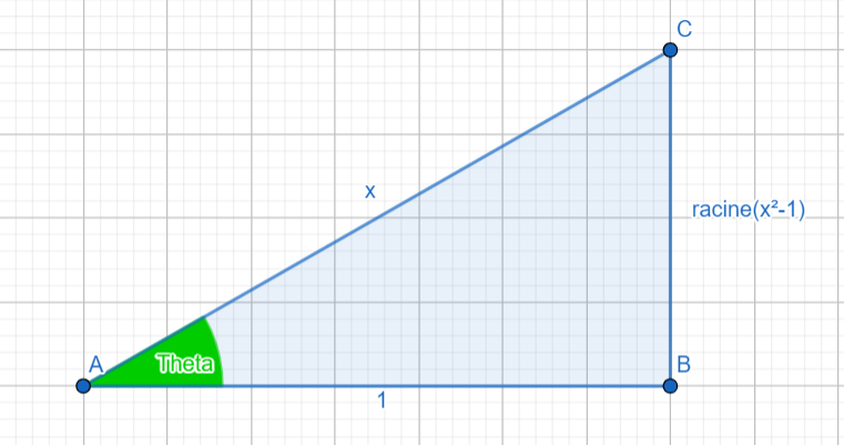 \( \begin{align*} \begin{cases} x = sec \theta \Rightarrow cos \theta = \frac{1}{x} \\ tan \theta = \sqrt{x²-1} \end{cases} \\ \\ I = x.sec^{-1}x- ln \lvert x + \sqrt{x²-1} \rvert+ C\end{align*}\)